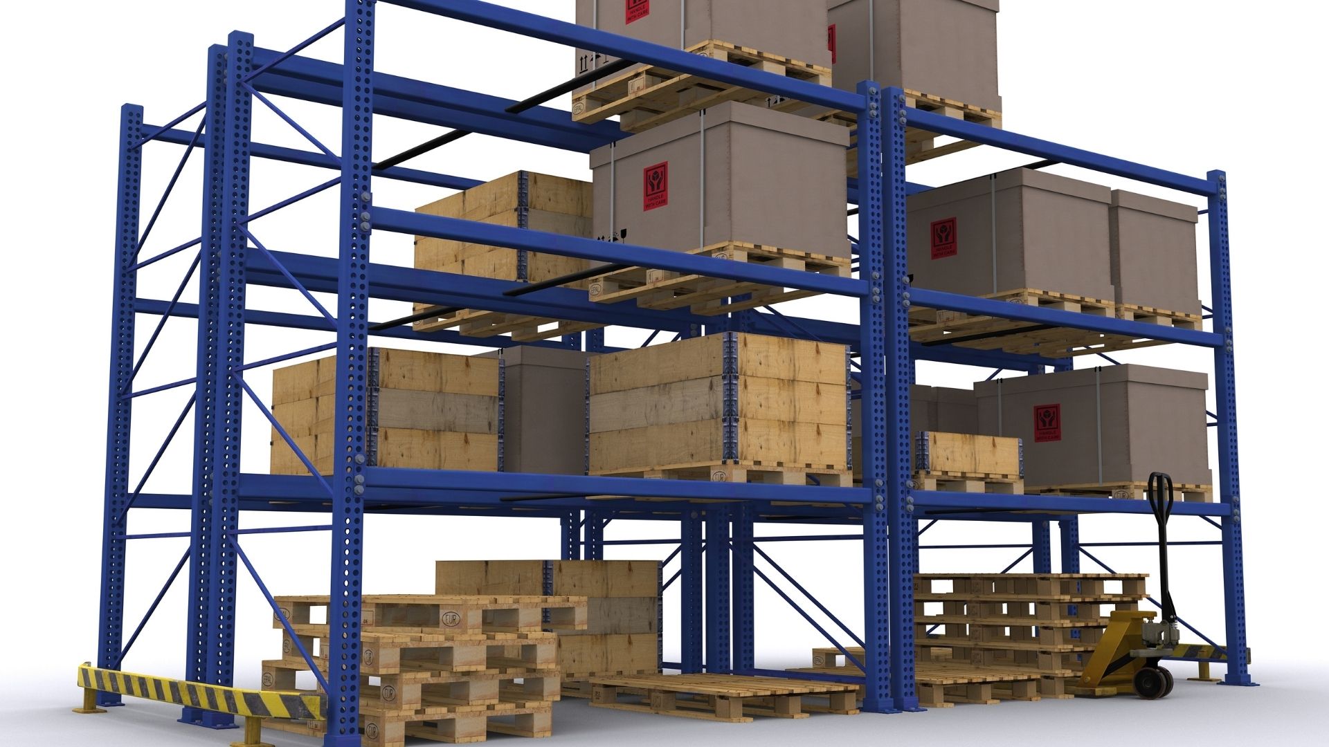 Están compuestas por vigas, largueros y placas de anclaje, formando una estructura sólida y resistente capaz de mantener los palets en su lugar de forma segura. La mayoría están fabricadas en acero, lo que les otorga una alta durabilidad y resistencia a la corrosión.